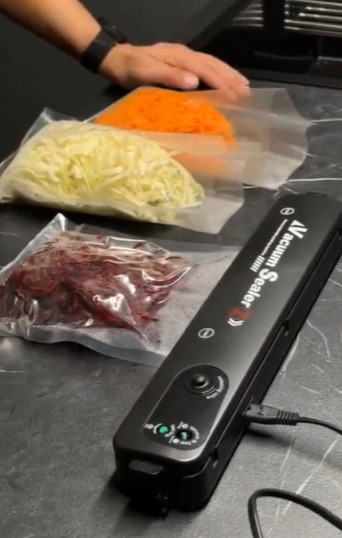 Elimina el aire y sella al vacío tus alimentos, evitando la humedad, bacterias y malos olores. Ideal para carnes, vegetales, frutas y snacks.